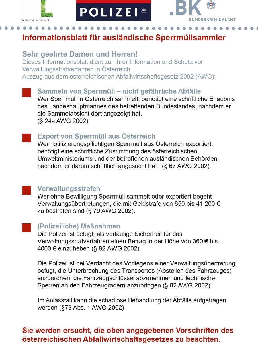 Die österreichischen Gesetze gelten auch für ausländische Sperrmüllsammler
