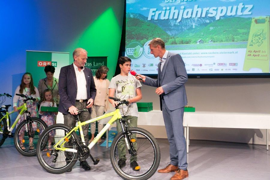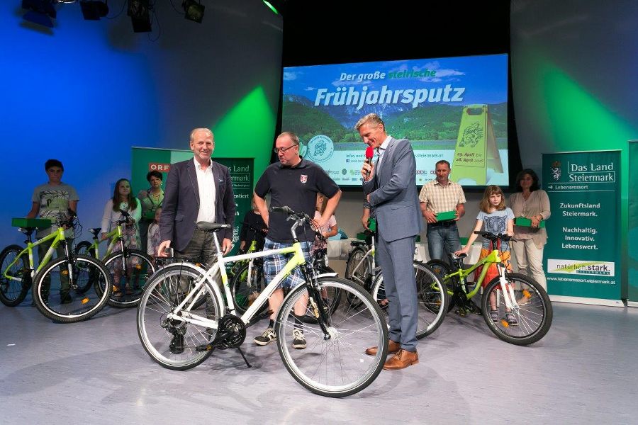 Alle am „großen steirischen Frühjahrsputz"-Mitwirkenden erhielten auch dieses Jahr eine Teilnahmekarte für das Frühjahrsputz-Gewinnspiel. 20.067 ausgefüllte Gewinnkarten wurden an das Land Steiermark geschickt und nahmen an der großen Verlosung teil. Die glücklichen Gewinner/innen freuten sich beim Bilanzabend über: